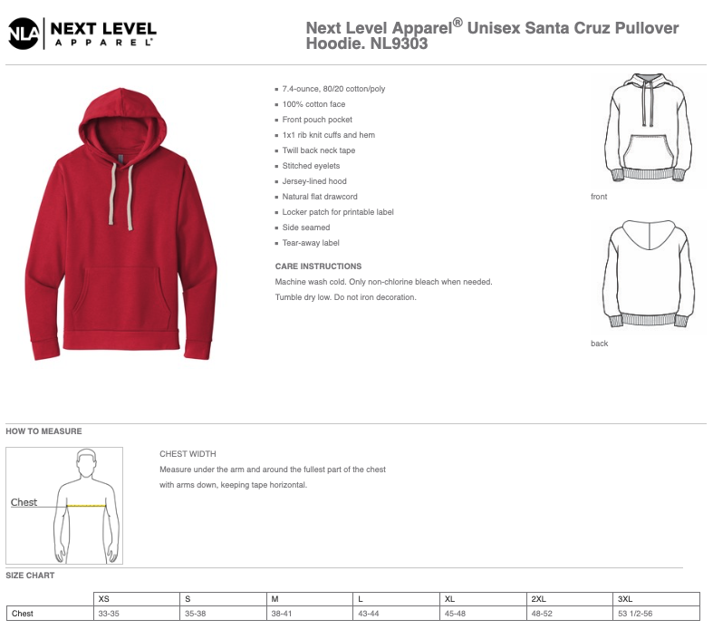 - This is a Next Level brand, 7.4-ounce, soft, unisex-cut, pre-shrunk, 80% cotton / 20% polyester pullover hoodie with white drawstring.