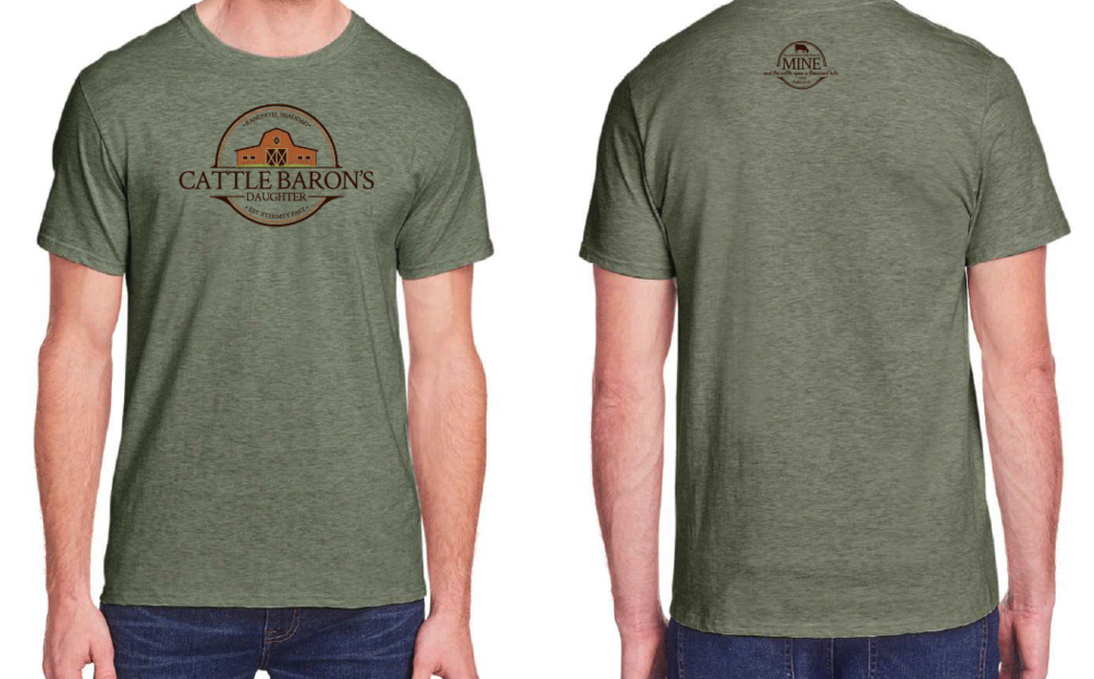 Get your t-shirt today and join Jamie in affirming to yourself and the world, "I AM A CATTLE BARON'S DAUGHTER!"